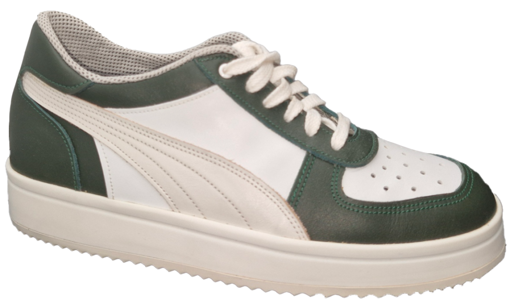 Ces baskets peuvent être qualifiées de "chunky sneakers", un style très populaire ces dernières années. Leur design allie élégance et confort, ce qui les rend polyvalentes et adaptées à de nombreuses tenues. Elles peuvent être portées aussi bien avec un jean pour un look décontracté qu'avec une robe pour une touche plus sophistiquée.​La tige de la chaussure est principalement composée de cuir, un matériau à la fois résistant et élégant. Elle arbore une couleur blanche immaculée qui couvre une grande partie de la chaussure, créant une base neutre. Des perforations subtiles ajoutent une touche de sophistication et permettent une meilleure aération. ​Coloris:​ Le vert profond, appliqué sur les côtés et le talon, apporte une touche de couleur audacieuse et contraste avec le blanc. Cette combinaison de couleurs crée un effet visuel dynamique et moderne.​ Lacets:​ Les lacets sont de couleur blanche, assortis à la base de la chaussure. Ils permettent un ajustement personnalisé et ajoutent une touche sportive .​Semelle:​ La semelle est épaisse et blanche, conférant à la chaussure un aspect robuste et tendance. Son design plateforme lui donne une allure plus imposante et assure un certain confort.​