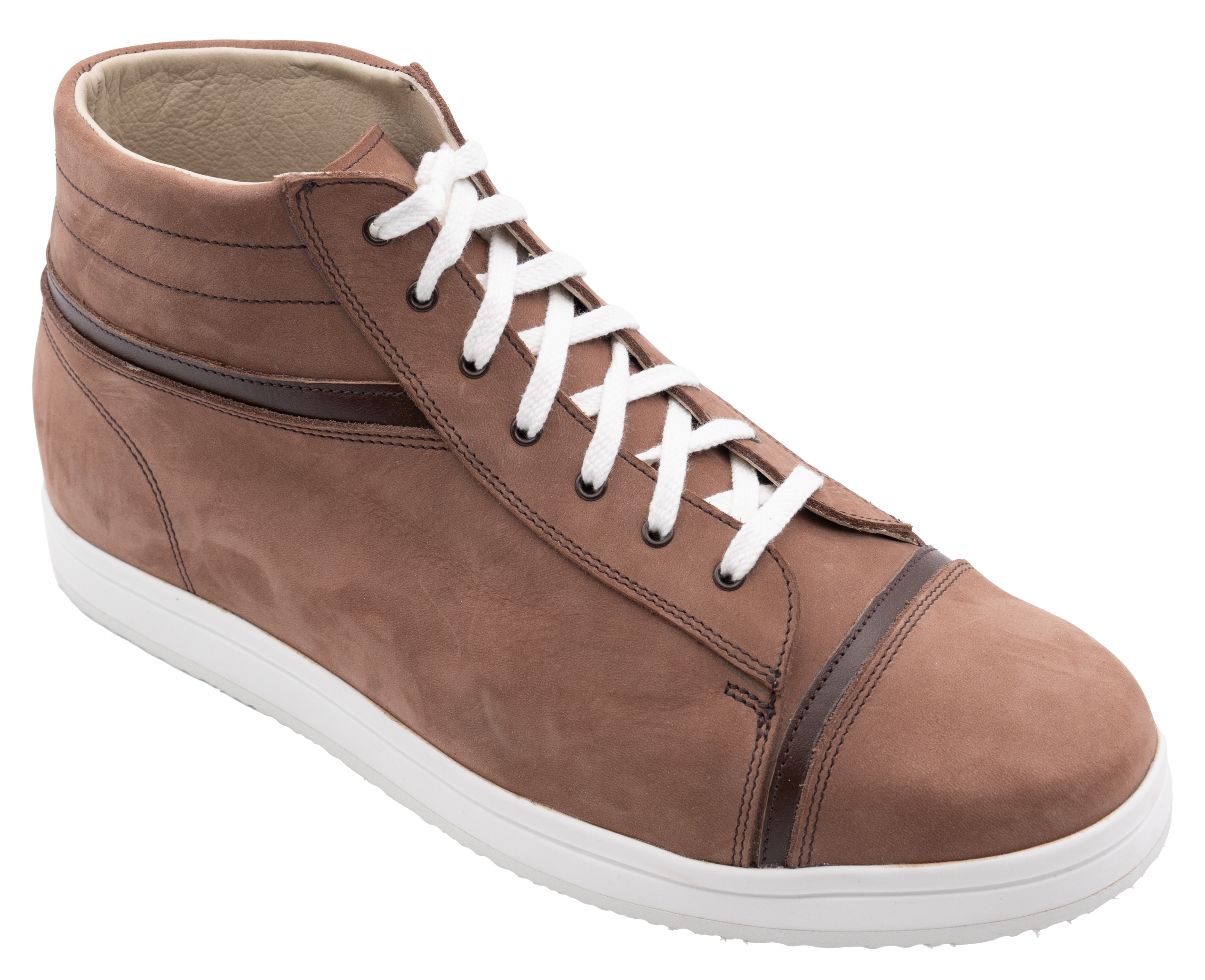 Révélez votre sens du style intemporel avec notre chaussure qui combine avec finesse la texture veloutée du nubuck couleur noisette et l'élégance du cuir lisse châtaigne. Parfaite pour ceux qui apprécient l'excellence orthopédique enveloppée dans une esthétique artisanale, cette chaussure est le symbole d'une élégance naturelle et d'un confort durable.