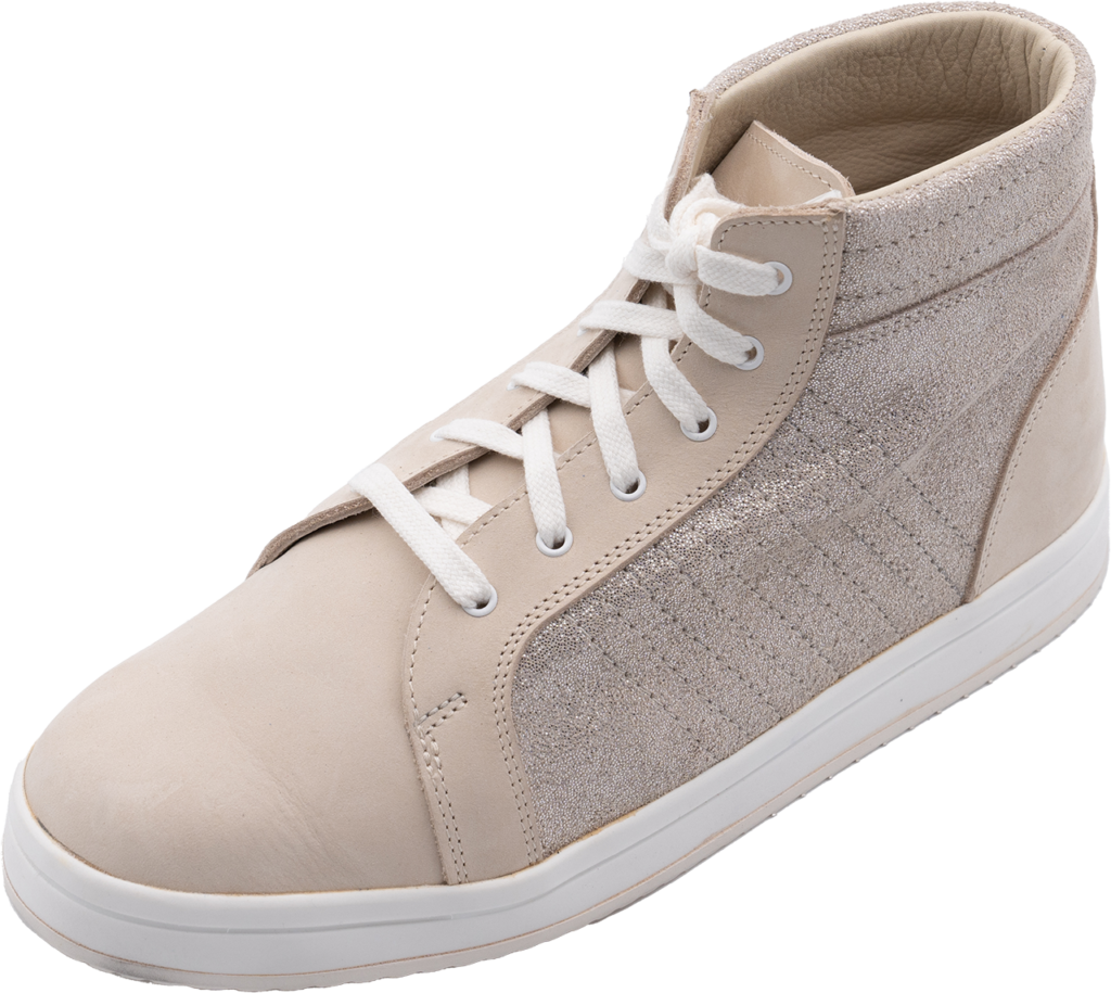 Élevez votre garde-robe avec notre chaussure qui allie le charme subtil du nubuck linen à l'éclat délicat de la croûte pailletée beige. Cette fusion crée une esthétique raffinée et moderne, offrant un confort orthopédique exceptionnel pour un quotidien empreint de style et d'élégance discrète.