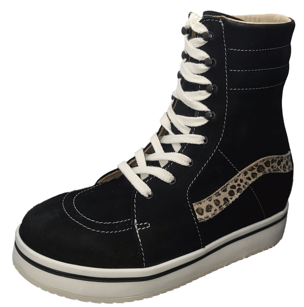 Exprimez votre style unique avec notre chaussure alliant la texture douce de la croûte de velours noir et un cuir léopard. Conçue pour les amateurs de mode qui apprécient le confort orthopédique, cette chaussure marie parfaitement la décontraction et l'élégance, adaptée à tous les jours et à toutes les occasions.